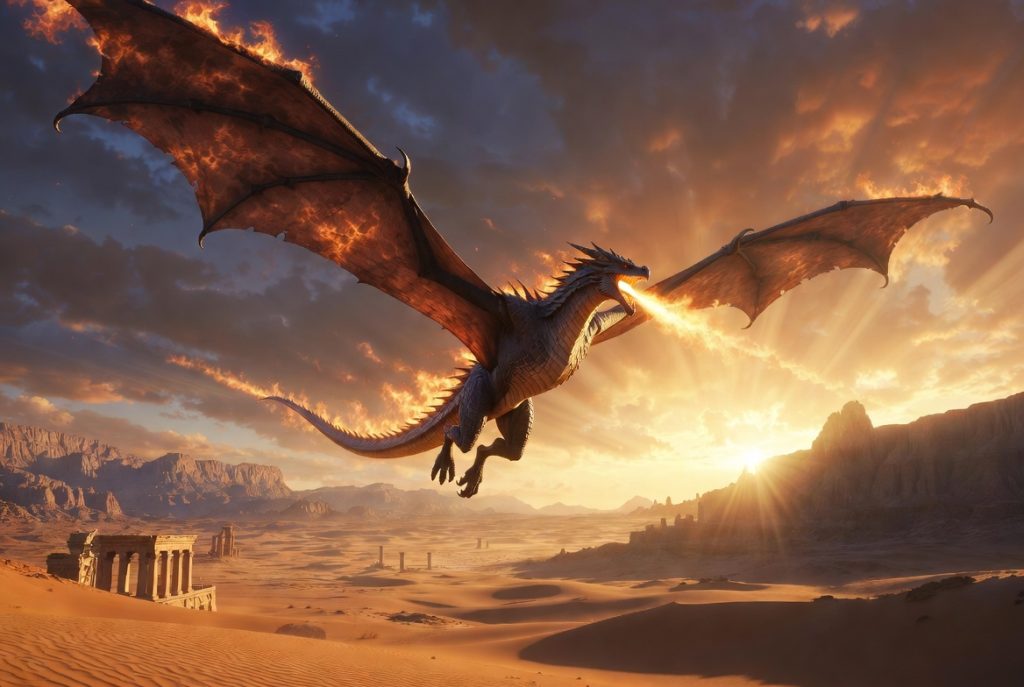 Un seul type de monture volante se chevauche vraiment : le wyvern. Il possède deux pattes arrière, des ailes massives et pas de pattes avant. Les vrais dragons à quatre pattes existent dans le monde de Pywel, mais ils ne se montent pas. Le wyvern est le seul qui offre un vrai vol contrôlé et des attaques de feu.